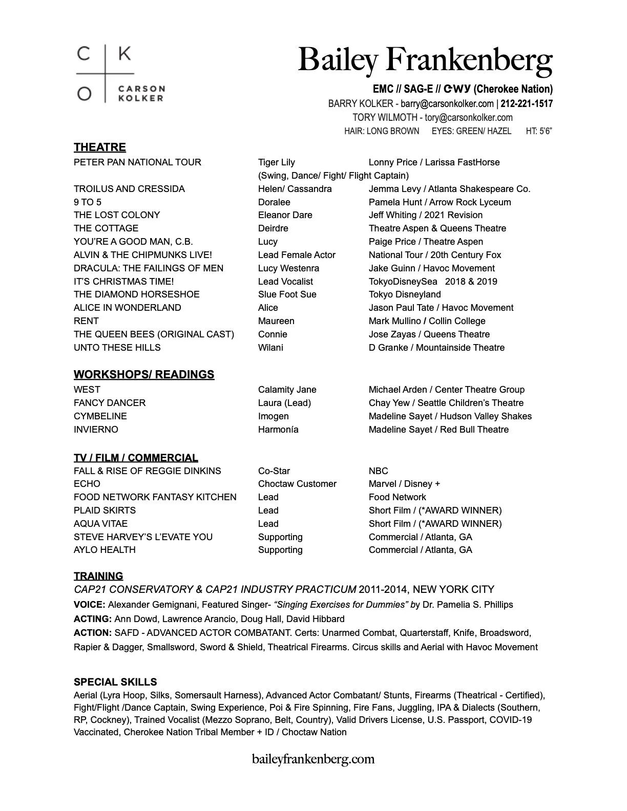Bailey is represented by the CARSON KOLKER ORGANIZATION and IVY ARTISTS MANAGEMENT Download Bailey's Performance Resume Bailey's Actors Access Page Contact Bailey
